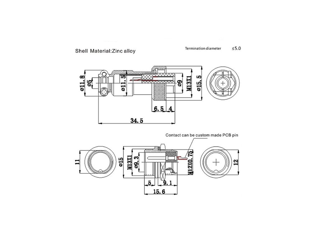- Pro získání páru je třeba dokoupit konektor GX 3pin 12mm - samec.