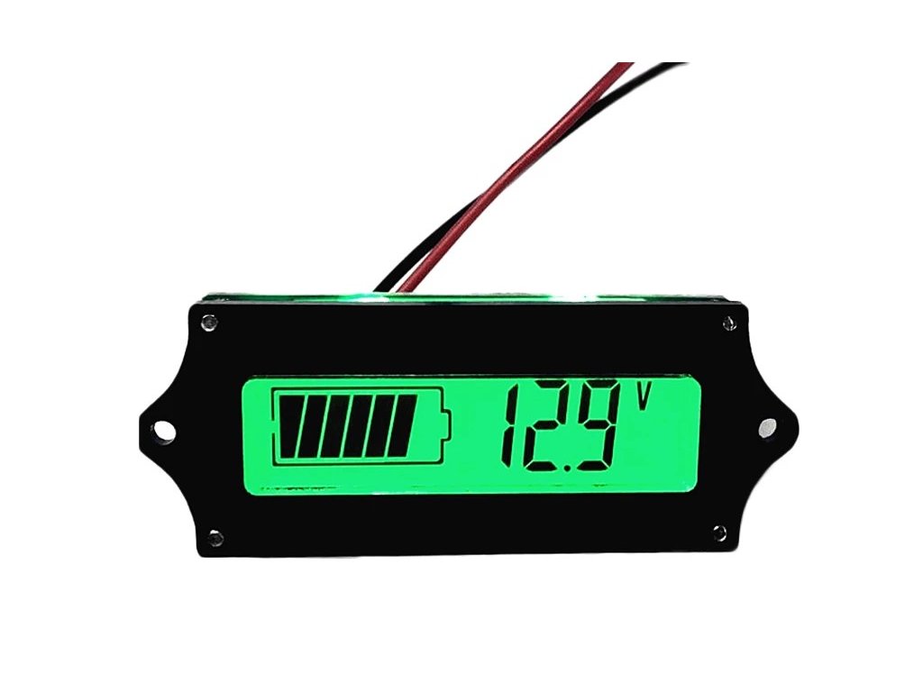 LCD měřič se používá pro 12V lithiové baterie. Zobrazuje stav nabití baterie, hodnotu voltů. Tlačítko přepínání hodnot je na zadní straně. Podsvícení displeje je zelené barvy. Délka vodičů je 300mm.