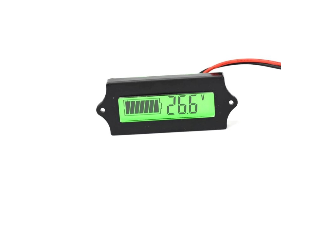 LCD měřič se používá pro 24V lithiové baterie. Zobrazuje stav nabití baterie, hodnotu voltů. Tlačítko přepínání hodnot je na zadní straně. Podsvícení displeje je zelené barvy. Délka vodičů je 300mm.
