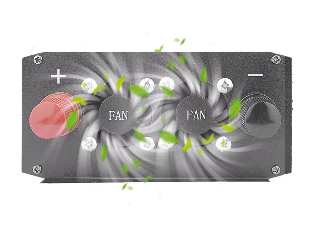 Čistý sinusový průběh výstupního napětí umožňuje připojení téměř jakéhokoliv spotřebiče. Můžete napájet elektrická zařízení, jako jsou TV / LED světla / LCD displeje / klimatizace a také spotřebiče s indukční zátěží - ledničky, mrazničky, indukční vařiče. Ideální využití najde tento měnič v autě, na člunu, v karavanech, u solárních zařízení na chatách nebo při kempování. Je vhodný pro nouzové napájení nebo k produkci elektřiny mimo domov. Vysoká účinnost až 95%. Nízká spotřeba energie samotného měniče může výrazně prodloužit životnost baterie. Měnič má univerzální tříotvorovou zásuvku a duální ventilátor, který přispívá k delší životnosti měniče. Tento chytrý ventilátor pro regulaci teploty zajistí tichý chod přístroje. Když je teplota <= 45°C, ventilátor přestane fungovat; když je teplota >= 45 ° C, ventilátor začne pracovat.