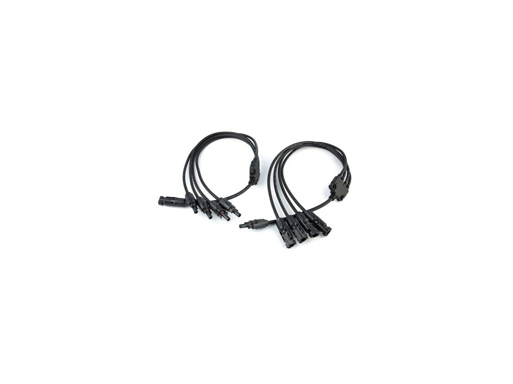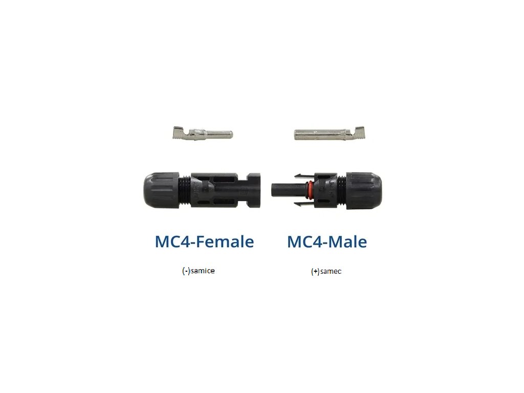 - Pro vytvoření páru je třeba dokoupit Rozbočení kabelové pro solární panely MC4 1x zdířka 4x konektor.