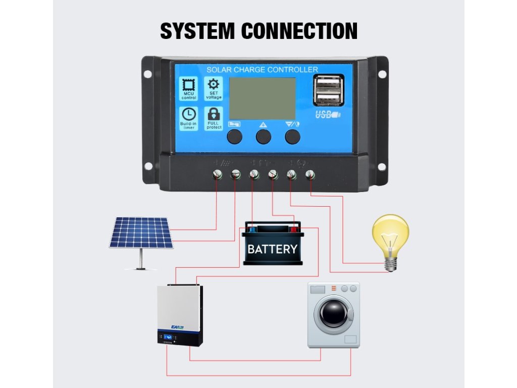 Jedná se o nový solární regulátor, který dokáže splnit požadavky vašeho fotovoltaického systému (včetně systému domácího osvětlení). K dispozici jsou modely s nabíjecím proudem 20A, 30A, 60A. Funkce: 1. Integrovaný průmyslový mikroprocesor. 2.Velký LCD displej, přes který je možno nastavit všechny parametry. 3. Čtyřstupňové řízení nabíjení PWM. 4. Zabudovaná ochrana proti zkratu, ochrana proti otevřenému obvodu, ochrana proti zpětnému chodu a ochrana proti přetížení. 5. Dualní Mosfet ochrana proti zpětnému proudu. 6. Nízká produkce tepla.